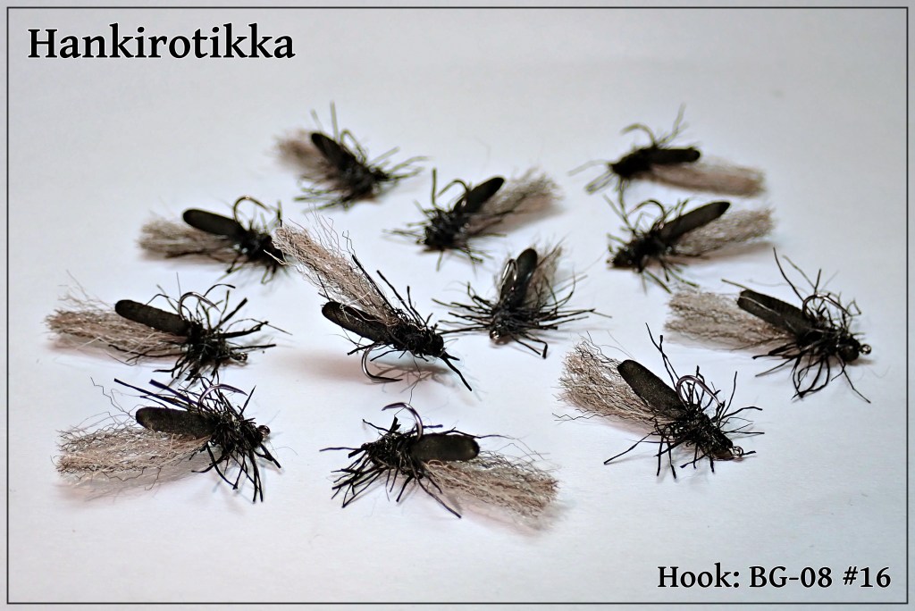 Musta Hankirotikka on puolestaan erinomaisen hyvä munivan hankikorrin jäljitelmä ja saa varovaisenkin kalan iskemään.