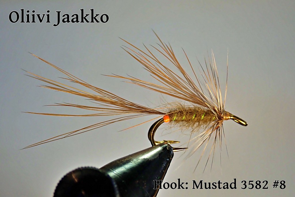 Oliivi Jaakko on toinen lohenkalastajan ”Täytyy-perhoista”. Koot 14-4.